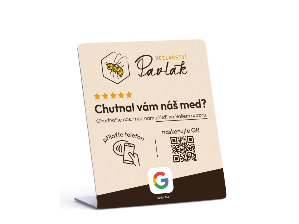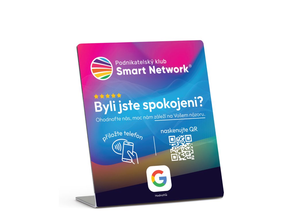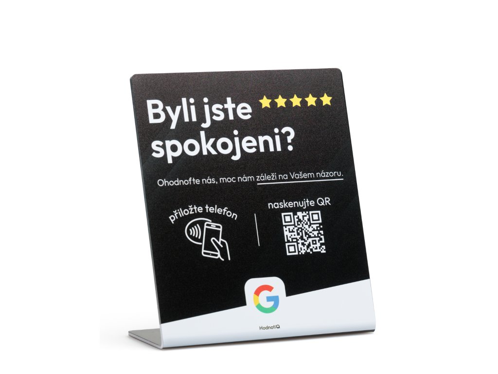 NFC stojánek Hodnotiq přemění každého spokojeného hosta na recenzi, která pracuje pro vás. Přestaňte prosit. Začněte sbírat.